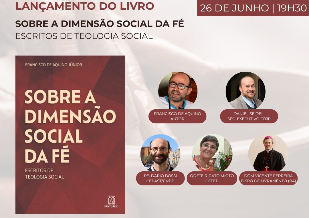 A Comissão Brasileira Justiça e Paz (CBJP), em parceria com a Comissão Episcopal para a Ação Sociotransformadora (CEPAST-CNBB) e o CEFEP, realiza no dia 26 de junho (quarta-feira), às 19h30, o lançamento do livro Sobre a Dimensão Social da Fé, de autoria de Francisco de Aquino.